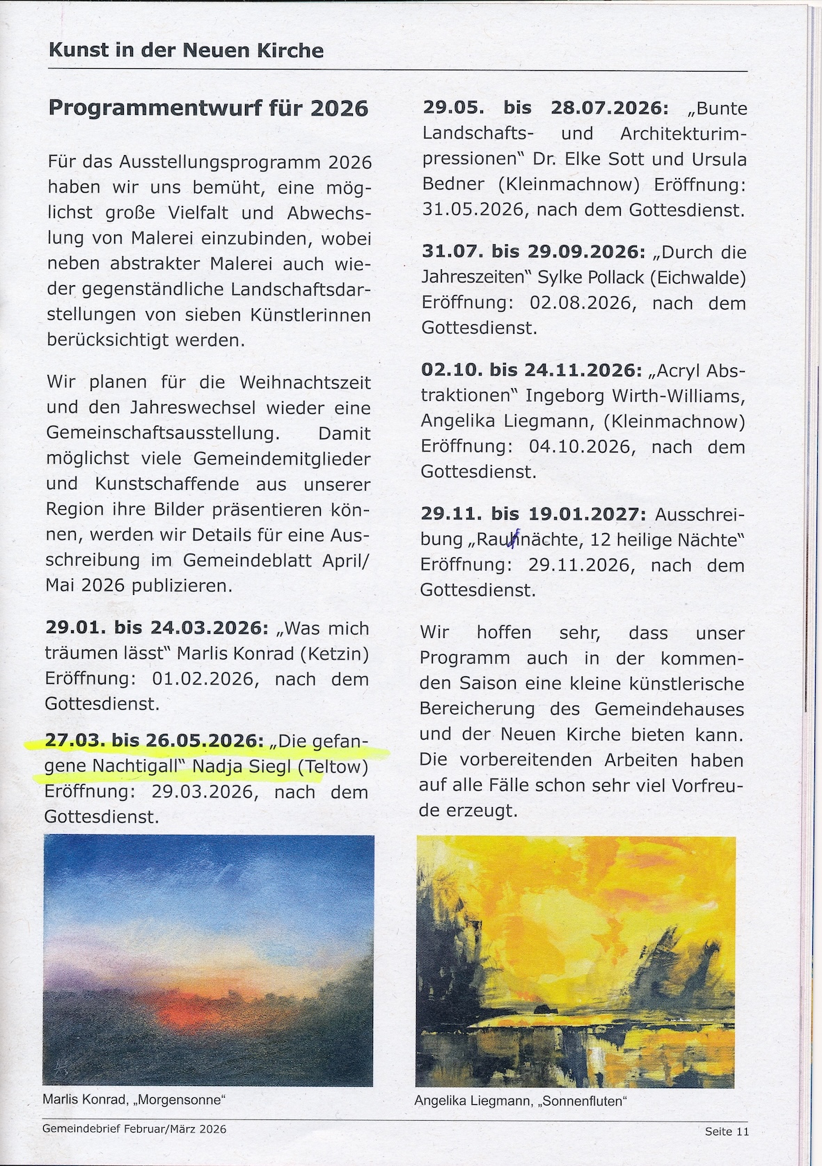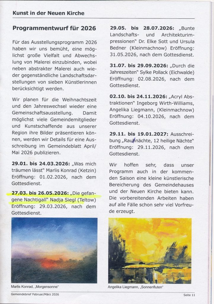Eröffnung: 29.03.2026, nach dem Gottesdienst, ca. 12 Uhr.